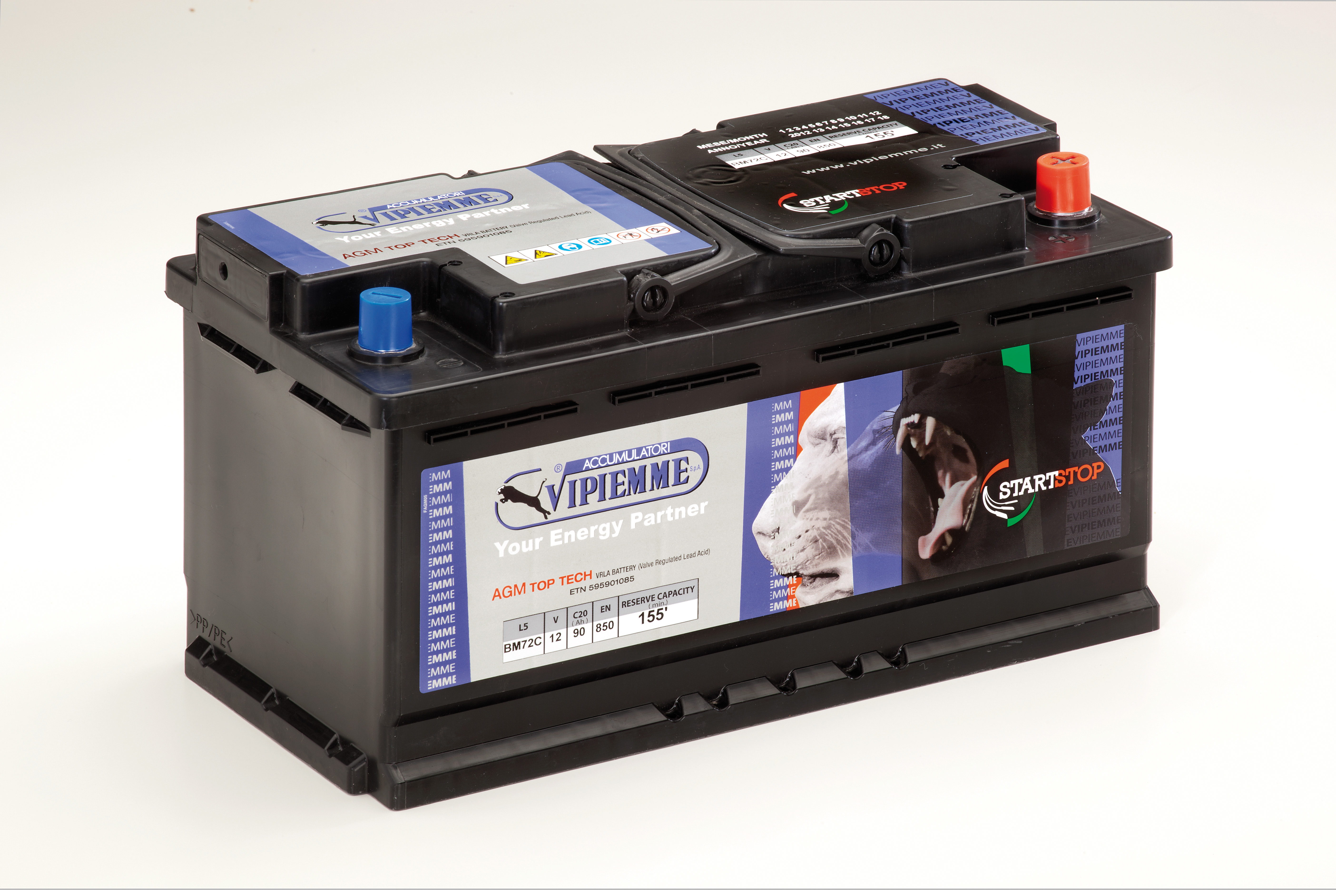 Inoltre vengono utilizzate griglie di lega piombo-calcio, riducendo a zero il consumo di acqua e rallentando notevolmente l’auto-scarica. In conseguenza al fatto che l’acido è completamente assorbito, non vi è alcuna perdita dello stesso. La costruzione di questa batteria prevede una notevole compattezza del gruppo nelle celle e la certezza che la materia attiva rimanga bene ancorata alle griglie durante la carica e la scarica. Tutto ciò rende la batteria poco soggetta a corti circuiti e molto resistente ai cicli e, per questo, particolarmente adatta a veicoli che montano sistemi “start and stop”, anche se può essere tranquillamente utilizzata per usi di tipo stazionario.